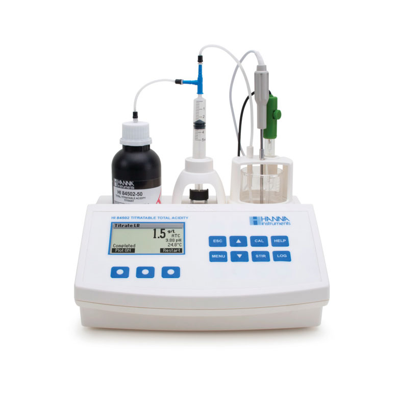 Şarap toplam asitlik düzeyini test etmek için tasarlanmış, kullanımı kolay, hızlı ve uygun fiyatlı otomatik mini titratördür.
